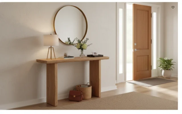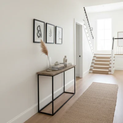 Pro tip: Choose a console table with a depth of around 10–12 inches (25–30 cm) to avoid blocking the walkway. Keep the décor minimal, a few thoughtful accents go a long way.