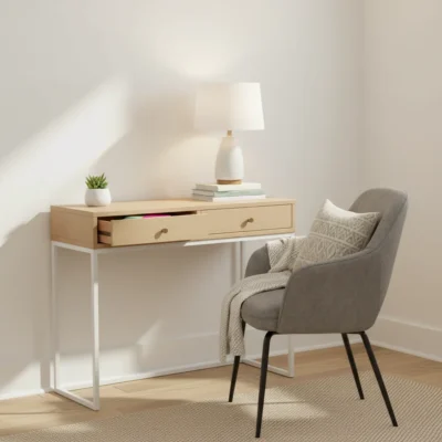 Extra tip: A console table with drawers gives you extra storage for notebooks, chargers, or stationery without cluttering the surface.
