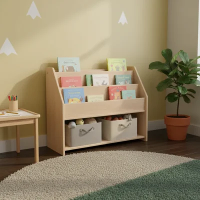This design displays book covers outward instead of showing the spines. It’s perfect for toddlers who can’t yet read titles. Seeing the pictures helps them remember their favorite stories and encourages them to pick books independently.