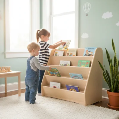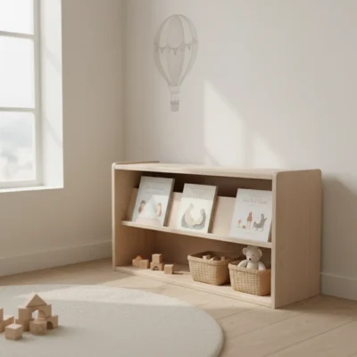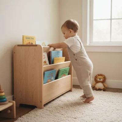 A Montessori bookshelf isn’t just furniture, it’s a learning tool. The way it’s designed helps children develop independence and organizational skills while fostering a genuine interest in reading.
