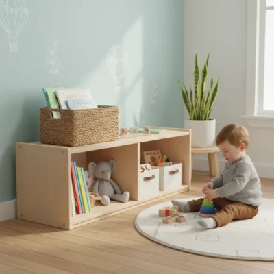 Avoid plastic or overly colorful shelves, they often clash with the calm, natural aesthetic that Montessori environments aim for.