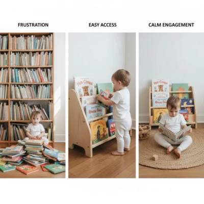 We have all witnessed the “Book Avalanche.” A toddler wants one specific book at the bottom or middle of a tightly packed traditional shelf. They pull, tug, and eventually, thirty books come crashing down onto the floor.