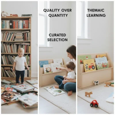 In a world of overstimulation, less is truly more. By displaying only 5 to 10 high-quality books, you allow your child to truly “bond” with those stories.