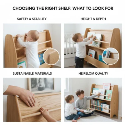 - Height and Depth: The highest shelf should be no higher than the child’s shoulder. If they can’t see the cover of the top book, the “front-facing” benefit is lost. Additionally, look for “slim” designs that don’t take up too much floor space but are deep enough to hold thick board books.